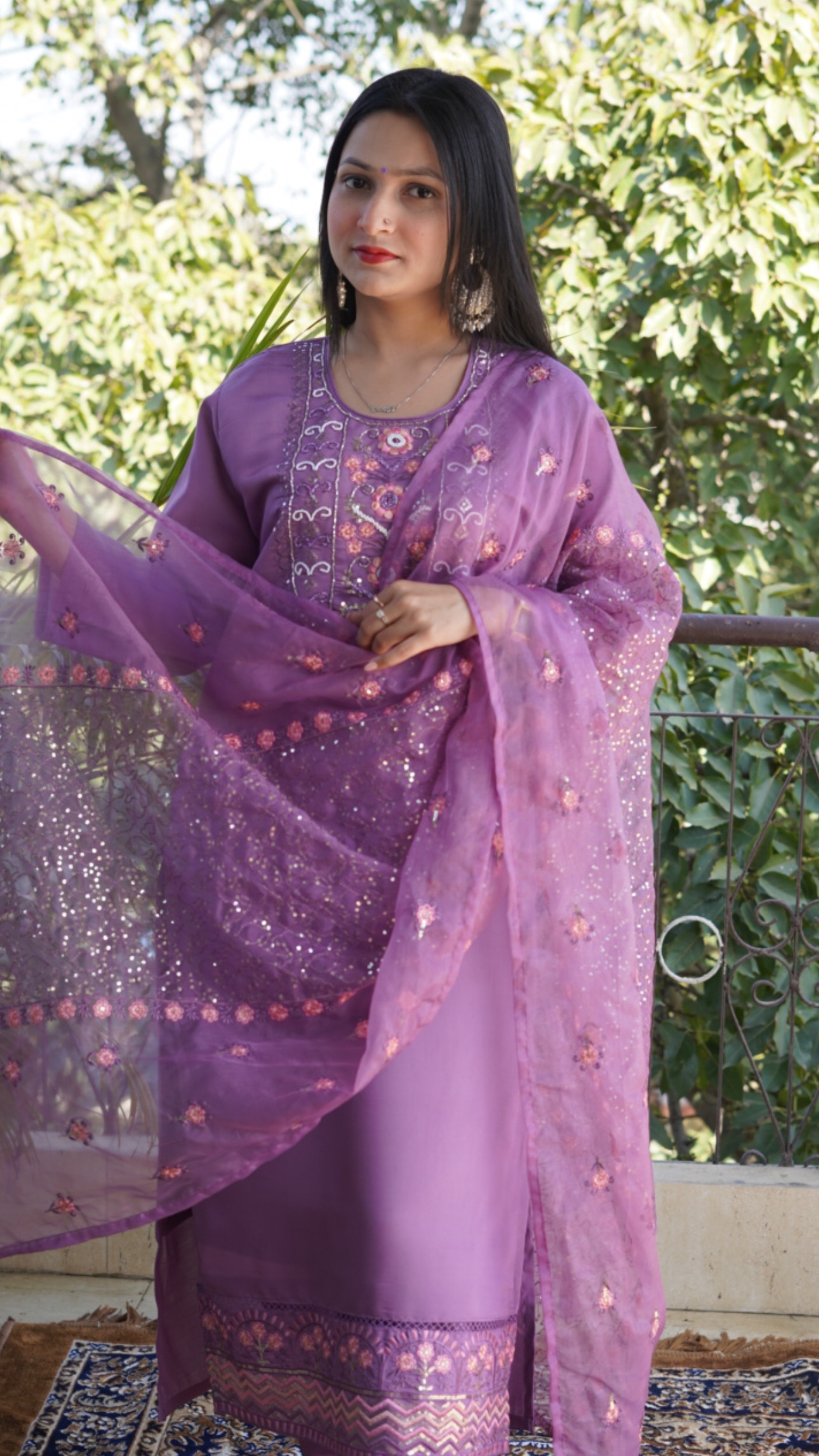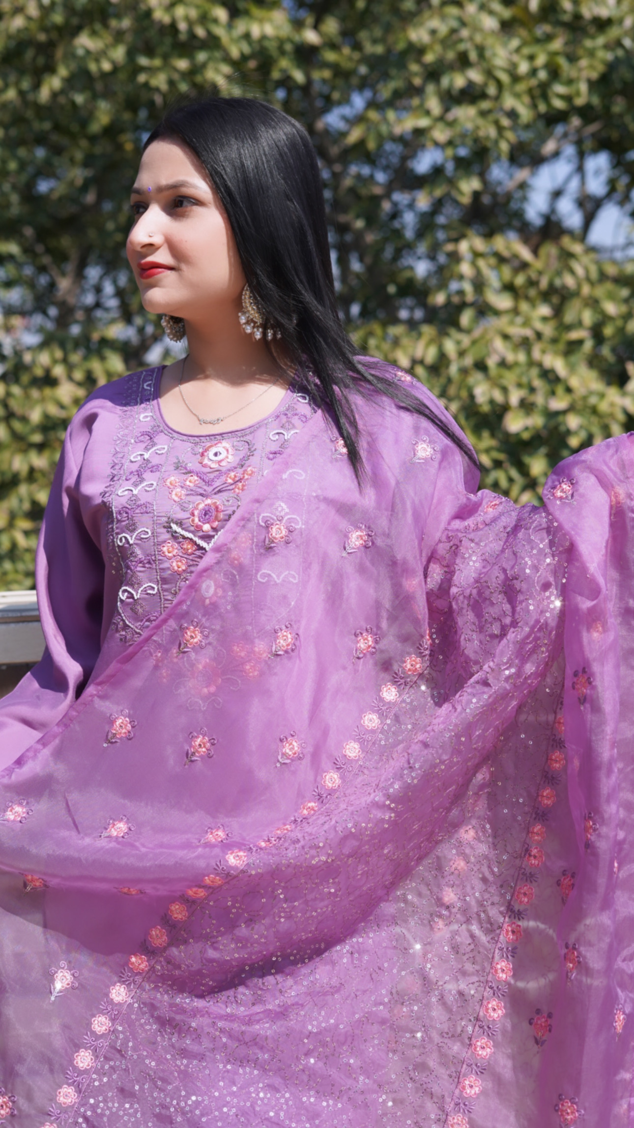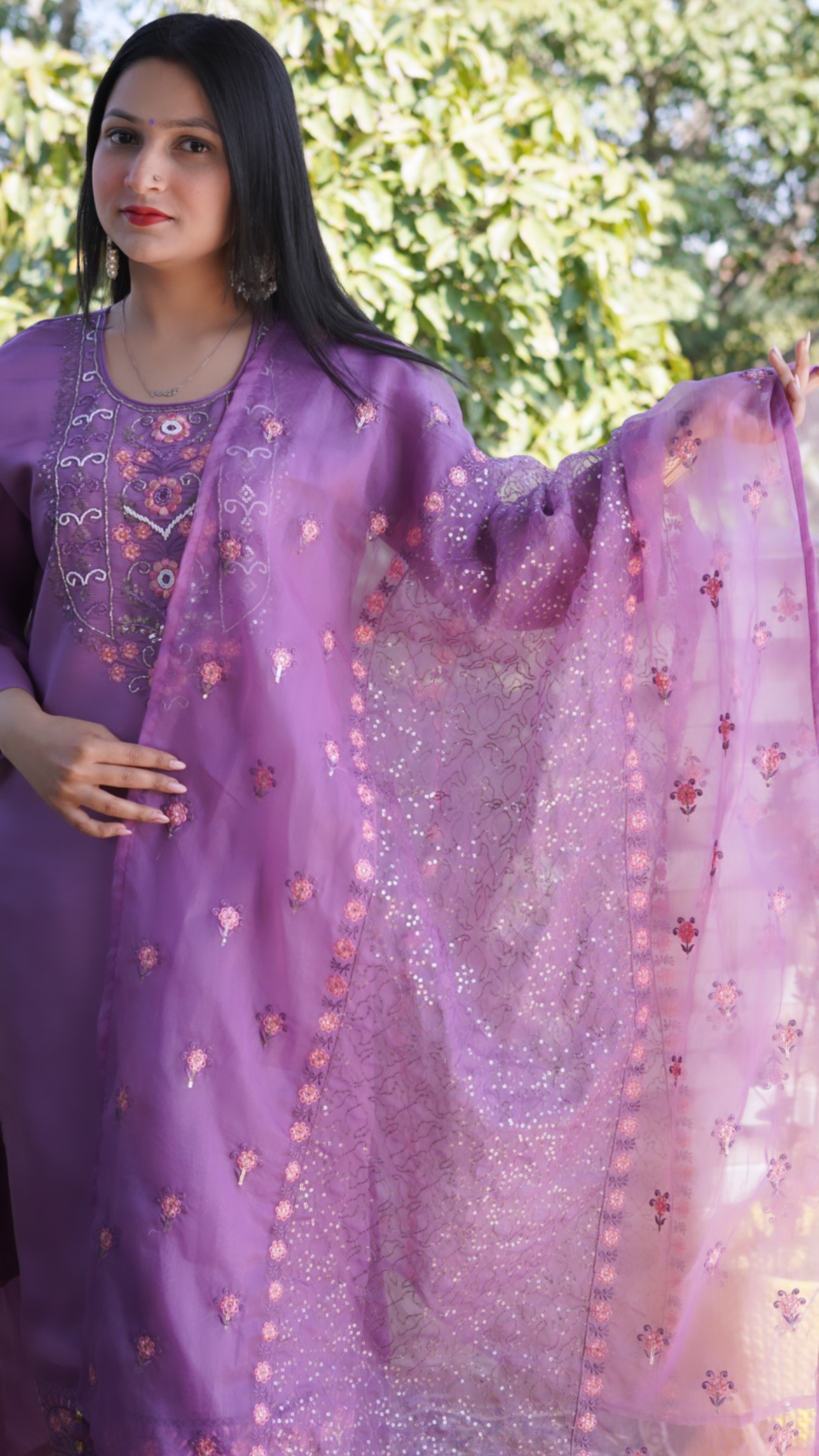 - The digital Embroidered flower and sequins on organza dupatta